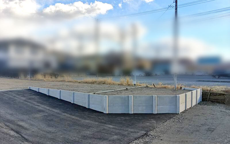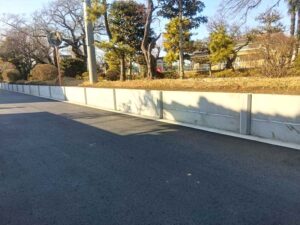 東京都多摩地区にて、敷地と道路の高低差解消にフェンスウォールフラットを採用して頂きました。