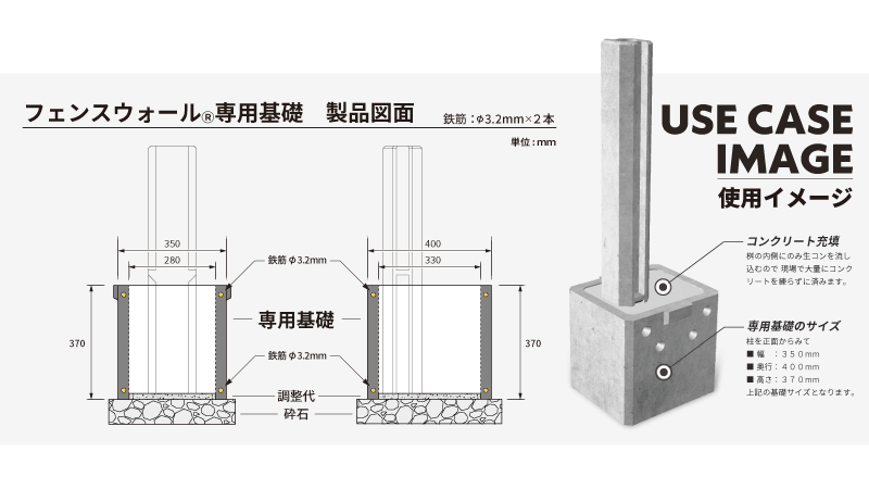 フェンスウォールⓇ専用基礎は